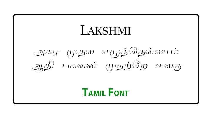 Lakshmi Tamil Font Free Download. Lakshmi is one of the Tamil Regular Font. Specially used in publications. Here you can download Font and Keyboard Layout for Free. This font is widely used by Tamil Nadu and Sri Lankan Tamil Peoples. The following font was design and generated by by Fontograpgher 3.5.