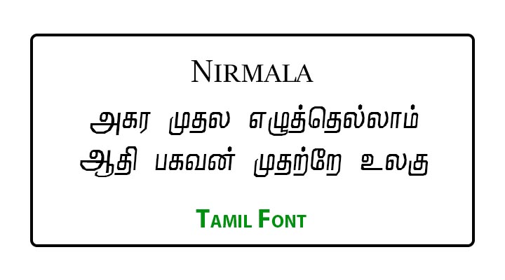 Nirmala Tamil Font Free Download. Nirmala is one of the Tamil Regular Font. Specially used in publications. Here you can download Font and Keyboard Layout for Free. This font is widely used by Tamil Nadu and Sri Lankan Tamil Peoples. The following font was design and generated by by Fontograpgher 3.5.